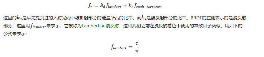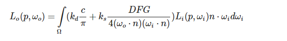 Cook-Torrance BRDF兼有漫反射和镜面反射两个部分: