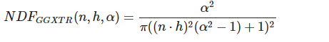 法线分布函数:估算在受到表面粗糙度的影响下,朝向方向与半程向量一致的微平面的数量。这是用来估算微平面的主要函数