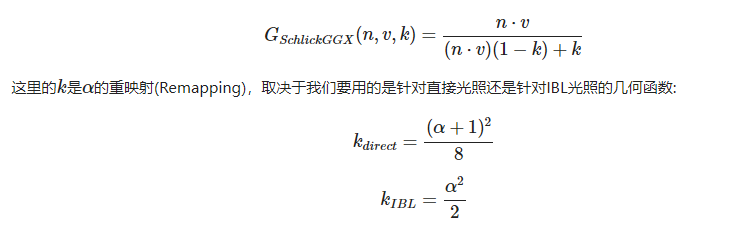 1 | float GeometrySchlickGGX(float NdotV, float roughness) |